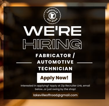 Email Resume to lakevilleoffroad@gmail.com. Feel free to stop in and tour the shop!